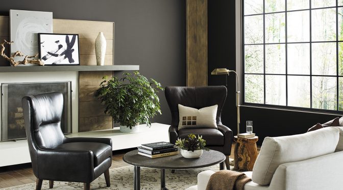 For an updated take on minimalism, pair Urbane Bronze with other warm neutrals, such as elegant bone whites like Modern Gray SW 7632 (283-C1). To bring in more color and a hint of the bold pairings of the ’70s, add a modern green like Messenger Bag SW 7740 (297-C7). A monochromatic look with Urbane Bronze on all four walls and trim creates a soothing site for working from home.